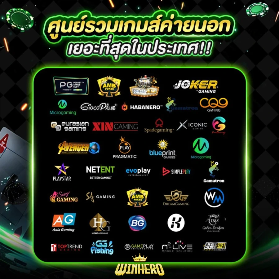 สำหรับแฟนสล็อตออนไลน์ WINHERO ก็ไม่ทำให้ผิดหวัง ด้วยเกมสล็อตนับพันเกมจากค่ายดังระดับโลก ทั้ง PG SLOT, JOKER, PRAGMATIC PLAY และอีกมากมาย พร้อมธีมที่น่าสนใจและรางวัลแจ็คพอตที่แตกง่าย ทำให้ทุกการหมุนสล็อตของคุณลุ้นรับรางวัลใหญ่ได้ตลอดเวลา